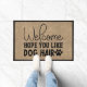 Introducing our faux burlap door welcome mat, perfect for dog owners! With a charming message that reads "Welcome, Hope you like dog hair," this mat is sure to bring a smile to your guests' faces. The durable material is made to withstand daily use and the rough texture helps to effectively trap dirt and debris. Not only is it functional, but it also adds a touch of rustic charm to your doorstep. So come on in, let your dog hair down, and make yourself at home!