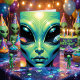 AN otherworldly birthday card. A captivating otherworldly design with an extraterrestrial alien being with big bulging eyes holding the reflections of other planets, including earth in them.