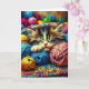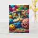 Adorable Happy Birthday card. You can personalise the text if you want or leave it. Cute kitten sleeping in balls of yard calm and sweet.