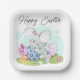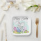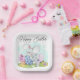 Hop into festive fun with this irresistibly sweet design! Featuring a cuddly grey bunny hugging a pastel blue egg adorned with delicate white flowers, surrounded by vibrant Easter eggs in pink, purple, and green hues, this design is bursting with charm. Set against a whimsical backdrop of teal bubbles and blooming flowers, it's the perfect way to add an extra dose of delight to your Easter party supplies. Ideal for paper plates, napkins, and cups, this design is sure to bring smiles to every bunny at your celebration!