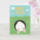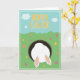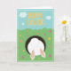 "Hoppy Easter" greeting card to wish a very happy Easter; with an adorable funny bunny jumping in his rabbit hole
