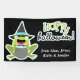 This Halloween banner features a happy green frog wearing a witch's hat with a boiling cauldron in front of him.The text "Hoppy Halloween" is at the right side, with your custom text below it. The image and text are placed on a dramatic black background. Cute for kids or adult parties, or to decorate your house during the Halloween season. *Clip art used in this design is copyrighted by Encore Software, Inc., which permits use to its licensors. All rights reserved.