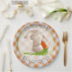 Hoppy Happy Easter Bunny Orange Gingham Pattern Paper Plate