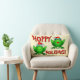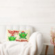Hoppy Holidays Cartoon Green Frogs Red Letters Lumbar Cushion