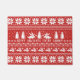 An adorable bunny rabbits welcome mat. This original red and white bunnies Christmas doormat makes a wonderful gift for the holidays! "Hoppy Holidays Every Bunny." A cute Christmas sweater style pattern with white bunny rabbits. Visit Jenn's Doodle World for even more seasonal doormats and bunny lover's Xmas decor.