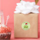 These whimsical vinyl round stickers have a cute cartoon green frog wearing a red and white Santa hat.