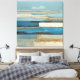 Soft bands of blue, white, and muted gold drift across the surface like a distant shoreline seen through memory. This abstract composition balances calm horizontals with textured depth, evoking sea, sky, and light without defining them. Subtle metallic accents add warmth and movement, catching the eye as the palette shifts from airy pastels to deeper ocean tones. Printed on canvas, the piece brings a sense of openness and quiet reflection to modern, coastal, or minimalist interiors.