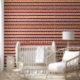 This wallpaper has stripes in red, green, blue, white, and gold like old fashioned stick candy that can be applied horizontally or vertically.
