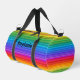 Horizontal Rainbow Stripes Duffel Bag with customisable text.. Other bag options available in drop-down menu.