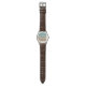 A stylish watch with horizontal stripes in brown, beige and blue in a modern minimalist design style with a touch of beach vibes.