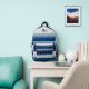 Wide and narrow horizontal stripes in blue, black, grey, and white make a classic and classy backpack.
