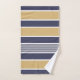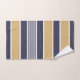 Horizontal stripes, navy blue, ochre, white bath towel set