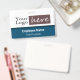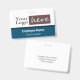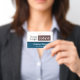 Easy to adjust company or business employee name badge with black and gray striped background. All text is adjustable. Add your own company logo. Made for long horizontal styled logos. If the fast template adjustment does not work for your logo, click on the customize further option to be able to delete and add your logo to the card. Blue colored option.