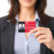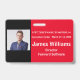 Custom Horizontal Symposium Badge in complimentary red, white and black colours. All elements are changeable to suit your needs. Elements: name of symposium, location and date of symposium, symposium attendee photo, symposium attendee title, and name of company. Slot at top for a lanyard. Also available in vertical orientation in this store.