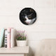 Wall Clock, 25.4 cm Round Black Wooden Frame