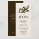 Celebrate Thanksgiving this year with this unique Thanksgiving dinner menu. It features a vintage style illustration of a horn of plenty filled with fruits and vegetables. A classic symbol of a Thanksgiving feast. It sits against a light tan backdrop with your details in a similar walnut brown colour to the illustration.