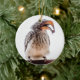 Ceramic decorative ornament with an image of a Yellow Billed Hornbill with a seed in it's mouth.