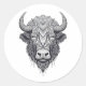 Horned Bison Buffalo Black and White Portrait Classic Round Sticker