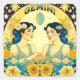 Beautiful Gemini twins surrounded by stars and flowers in yellow and blue. Pretty ethereal celestial zodiac art.