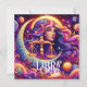 Ai art depicting a beautiful colourful woman surrounded by purple, pink and orange scales, planets, stars, moons and swirling colours. Horoscope sign Libra zodiac celestial art. Libra traits and dates.