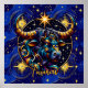 Royal blue and gold Art with a bull symbol for the horoscope sign Taurus with star background. A striking ai art illustration.