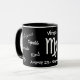 Zodiac astrology sign Virgo coffee mug with words that describe the Virgo positive traits.