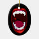 Horror picture show poster style art, vampire teeth, fangs, sharp white elongated canines, a bright red drop of blood, red lips. The background colour is set to black but you can use the customise feature to change it if you like (customise-edit-background). This ornament is perfect for hallowe'en parties, haunted house party, trick or treat halloween decor, spooky special occasions, b horror movie nights, ghoulish gatherings, vampire festivals or whatever your heart desires. Original shlock horror movie art by M Chaume.