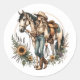 Horse and Girl Sticker with Sunflowers