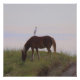 This wild Spanish mustang searches for food among the dunes of Corolla beach. Located in the Outer Banks of North Carolina these animals are free to wander. In this case this one picked up a hitch hiker along the way.