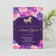Horse birthday invitation, pink purple gold invitation