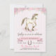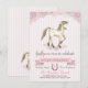 Horse birthday party invitations with pretty watercolor horse on a pink watercolor flower and stripe background. This horse birthday party invitation is easily customised for your event by simply adding your event details.