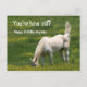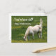 Horse with it's head down grazing and it's tail up in surprise photo Birthday postcard asking "You're how old?" and inside text of "Happy Birthday anyway". Text can be changed or removed with the CUSTOMIZE button.