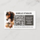 Business cards with QR code featuring a modern, artistic horse and flowers design. Great for farms, stables, and other businesses. The QR code on the front can be used for your online shop or website. Great mix of traditional and digital to meet your needs. The front also has space for your products and services such as equestrian, lessons, horseback riding, and boarding. Add your name, title, and contact information including your social media handles to the back of the business card. Customise the text on the front and back. Use the template to create your own business cards with QR code.