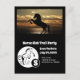 A mare rearing up is located on the lower left hand corner, done in a line art style. Above the horse is a photograph of a horse silhouette in the foreground of a pretty sunset, the image can easily be changed to your own photo, selfie, or image. Between the two horses is a customised text field that reads as "Horse Club Trail Party", repurpose to suit your need; birthday, bachelors, family reunions, or event where horses are welcomed. On the left bottom half are the text fields for save the date and location of the event. Below hooves is an initial for a personal monogram.