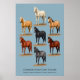 Chart showing some common solid coat colours in horses. This chart includes palomino, cremello, buckskin, bay, grulla/grullo, chestnut/sorrel, and black.