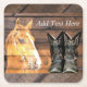 Horse Cowboy Boots Rustic Barn Board Square Paper Coaster
