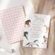 Invite friends and family to your little one's birthday party with this simple illustrated horse themed invitation, featuring a pink gingham pattern on the back side.