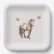 Horse Cream Butterflies Birthday Paper Plate