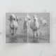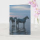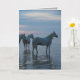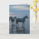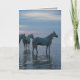 Three white Camargue horses in the water watch for the other horses in the herd in southern France at sunset. This is a Save Wild Horses Card, images by Carol J. Walker.