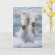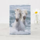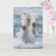 Two white Camargue horses swim together towards shore in southern France.There is an additional image of the horses inside the card. All images are by Carol Walker and copyright Living Images by Carol Walker.