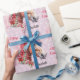 Horse In Christmas Ribbons Add Girl's Name Pink Wrapping Paper