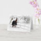 Here is a colour photo showing a beautiful brown horse with a white blaze on it's nose, standing beneath a low hanging branch heavy with snow. A weather blanket on it's back is dusted with fresh powdery flakes. Softened matte edges give the white setting a dreamlike feeling. Personalise the inside with your own special message to suit any occasion, or delete the example to handwrite your greeting.