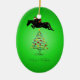 Fun Christmas ornament for the hunter jumper equestrian. The rider is wearing a Santa's hat and jumping over a pretty Christmas tree with the greeting Merry Christmas.