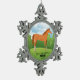 Celebrate the bond between a horse and its owner this holiday season by hanging this beautiful keepsake ornament on your Christmas tree. This unique ornament features an illustration of a horse in a lush green pasture, set against a warm colour palette of brown, green, and blue. The ornament includes three customisable placeholders where you can add a stable name, horse name, and the current year. What sets this ornament apart is its versatility – you can easily switch between six different horse breeds by utilising the layers option. Want to showcase a different breed? Simply hide the current horse illustration and reveal the one you desire. This feature will make a perfect gift for any horse enthusiast by allowing you to tailor the ornament to match their beloved horse’s breed. Whether you are buying a gift for yourself or a fellow horse lover, this customisable ornament will make a thoughtful gift that will be cherished for years to come.