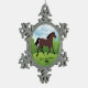 Celebrate the bond between a horse and its owner this holiday season by hanging this beautiful keepsake ornament on your Christmas tree. This unique ornament features an illustration of a horse in a lush green pasture, set against a warm colour palette of brown, green, and blue. The ornament includes three customisable placeholders where you can add a stable name, horse name, and the current year. What sets this ornament apart is its versatility – you can easily switch between six different horse breeds by utilising the layers option. Want to showcase a different breed? Simply hide the current horse illustration and reveal the one you desire. This feature will make a perfect gift for any horse enthusiast by allowing you to tailor the ornament to match their beloved horse’s breed. Whether you are buying a gift for yourself or a fellow horse lover, this customisable ornament will make a thoughtful gift that will be cherished for years to come.