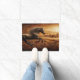 A detailed, embossed leather doormat depicts a horse running through a rural landscape. The horse is in the foreground, with a barn and other farm buildings in the background.