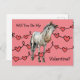 This cute Valentine postcard will delight young and old alike with the sweet horse asking to be your Valentine. Special to horse lovers, animal lovers, and everyone who loves a cute card. Valentine's Day can be awkward for some, especially if you want to pass out cards to classroom friends and neighbourhood friends. Take the edge off of giving and bring a smile to one who is lucky enough to receive this card.