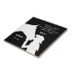 Horse memorial ceramic tile with personalised names, date and quote: "While time will fade, these hoofprints… the ones You left on my heart… will never disappear." Horse and girl vector drawing. You can place some smaller keepsakes of your horse in this box. Western cowgirl black and white silhouette vector art for horse lovers. Personalised horse gift.