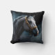 Horse on a black backgroung with blue tints cushion