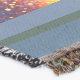 A quality printed throw has its advantages. This is a much finer weave throw than its loopier cousins, and though lighter, it is worth the investment for custom room accessorizing. The back is much prettier than the typical brown, and the fringe on the long sides very vivid, the selvage nicely done. Before photographing, I washed the throw in cold water, delicate, with a thicker woven throw the same size. On tumble dry low, this throw was dry in half the time as the other. This is a very practical quality if you use throws for furniture covers or to wrap up in frequently. The sleekness of the fabric makes it a great layer for accenting or protecting without the feeling of sitting on too much stuff. Perfect for napping or when you feel a light chill coming on. The color printing is beautiful and on this fabric, matched the design and color of my Photoshop image. This is an advantage for blending room fabrics and colors. The fringe on the short sides prints the colors from the design image and therefore varies from the side fringe. I streaked a white fractal line through the plaid pattern to give the illusion of weaving. This printed as crisp as an illusory thread, and put some white in the short side fringe, showing another advantage of print vs loomed- for artistic purposes, line lines, detail, and color integrity can be planned and preserved. My loomed throws have color limitations and more of a needlepoint texture. Print throws reproduce an exact image. The throw felt a little stiff straight out of the package, but this went away in the first delicate wash. Of course I searched the wash water for ink or bleeding and there was none.
